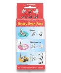 For use with all sewing machines, the rotary foot is effective for preventing stretchy fabrics, jersey and knitted fabrics and hard to feed materials, like leather or vinyl from slipping or puckering. The foot also allows left-right tilt, and its caterpillars independently grip the fabric for perfect feeding along areas where there is a height difference between the left and right sides of the needle, especially when hemming thicker fabrics.It comes with: blind Hem attachment, Bias Tap attachment, Wide rolled hem attachments.